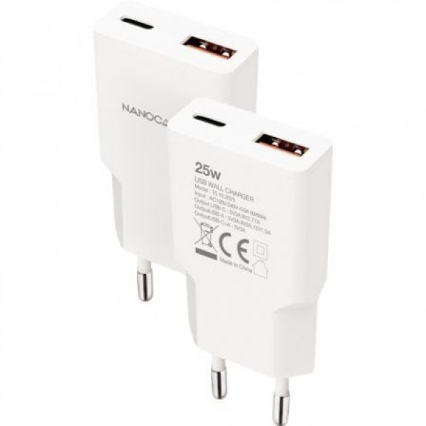 Cargador de 25W con salida USB-C PD + USB-A QC