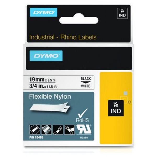 CINTA ROTULADORA RHINOPRO NYLON 19MMX3.5M NEGRO/BLANCO DYMO 18489