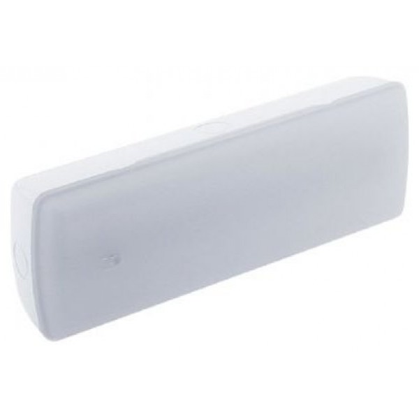 Luminaria LED de emergencia fabricada con un cuerpo de policarbonato en blanco y un difusor del mismo material. Cuenta con una potencia de 400 lúmenes, un ángulo de apertura de 120º y un IP43.