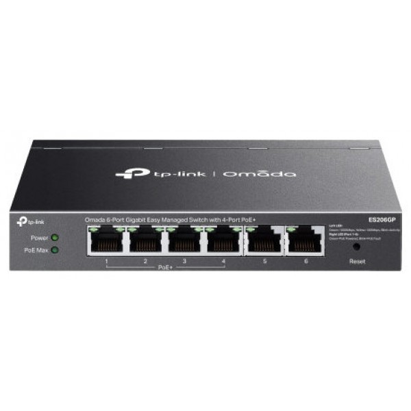 | Hardware | - Sin ventilador - Instalación: Sobremesa y montaje en pared - Bloqueo de seguridad - Fuente de alimentación: Adaptador de corriente CC (Salida: 53,5 V CC / 1,31 A) - Puertos PoE (RJ45): Estándar: Compatible con PoE 802.3af y PoE+ 802.3at Puertos PoE: 4 puertos Potencia PoE disponible: 65 W para todos los puertos PoE+, 30 W máximo por puerto PoE rápido y PoE permanente Recuperación automática de PoE‡ Hasta 250 m de distancia de transmisión PoE** **La velocidad de los puertos que admiten transmisión PoE de 250 m se reducirá a 10 Mbps. La distancia de transmisión real puede variar según la calidad de los cables. - Protección contra sobretensiones: ±6 kV |