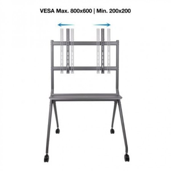 Dale un toque elegante y minimalista a tu espacio de trabajo o salón. Nuestro soporte iStand encaja en cualquier ambiente, además lo podrás mover fácilmente de estancia gracias a sus ruedas. Construido en aluminio y acero.. . Especificaciones:. . Pantallas soportadas: 50""-86"". Compatible con VESA: Máximo 800x600. Mínimo 200x200. Peso máximo soportado de pantalla: 120 kg. Rango de ajuste de altura del soporte: 1600-1725 mm. Ancho del soporte: 1067 mm. Bandeja inferior multiusos. Medida de bandejas: Inferior 1047x192 mm. Peso máximo de la bandeja: 10 Kg. Distancia entre ruedas: 1057x801 mm. Ruedas con sistema de bloqueo. Ruedas de 75 mm. Sistema de organización de cables. Material: Aluminio, Acero. Color: Gris. Peso neto: 19,38 kg. Peso bruto: 21 kg. Medidas del embalaje: 1100x356x158 mm